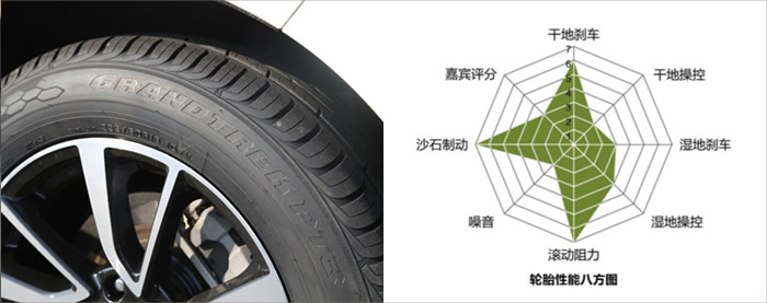 首先,在干濕地繞樁測(cè)試中,GRANDTREK PT3的濕地操控極限稍優(yōu)于干地操控極限,胎面上四條縱向較粗的溝槽和繁多的橫向溝紋保證了良好的排水性能。其次,在砂石路面剎車測(cè)試中,表現(xiàn)同樣優(yōu)秀。最為突出的是,得益于SUV專用低發(fā)熱高密度橡膠配方,GRANDTREK PT3的滾動(dòng)距離贏得全場(chǎng)第一,在節(jié)省燃油方面性能亮眼。